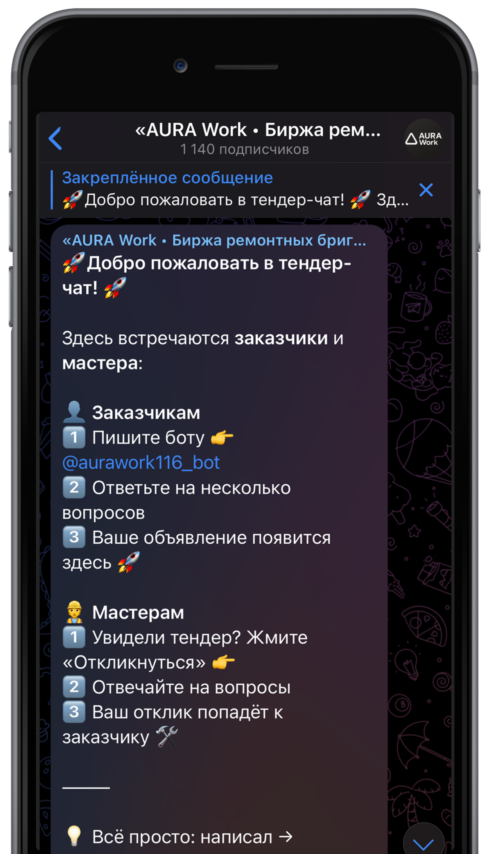 Простая и удобная доска объявлений в Telegram. Для тех, кто ищет работу или специалистов для ремонта.